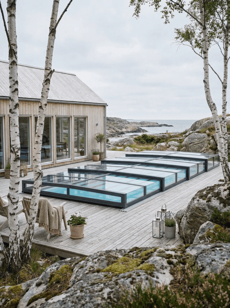 Design und Funktionalität verbinden sich bei den Schwimmbadüberdachungen der CLASSICline.